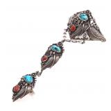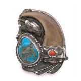 - 3034 NATIVE AMERICAN SILVER TURQUOISE CORAL BEAR CLAW RING