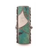 - 3044 NORMAN LEE NAVAJO SILVER TURQUOISE MOTHER OF PEARL RING