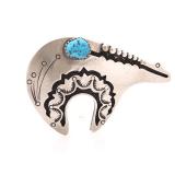 - 3070 SAMPSON GRAY NAVAJO STERLING SILVER TURQUOISE BEAR FETISH BROOCH PENDANT