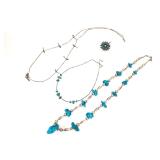 - 3075 4PC NATIVE AMERICAN SILVER TURQUOISE NECKLACES & PENDANT