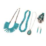- 3076 5PC SOUTHWESTERN SILVER TURQUOISE JEWELRY