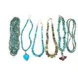 - 3054 3PC NATIVE AMERICAN JASPER, TURQUOISE, & SEED BEAD NECKLACES