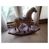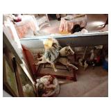 RARE ANTIQUE TOYS TO INCLUDE: SEVERAL AUTHENTIC CARVED WOODEN CAROUSEL HORSES. HAND MADE