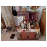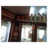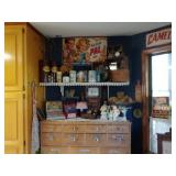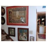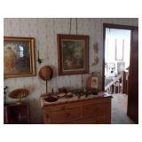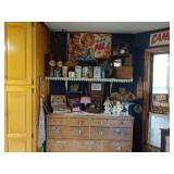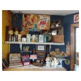 COLLECTION OF METAL PICTURES , ANTIQUE METAL SPITTOONS, RARE ADVERTISING CANS