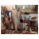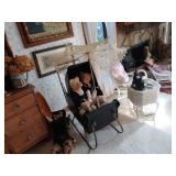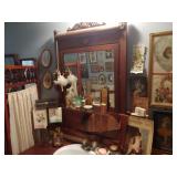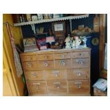 EASTLAKE FURNITURE, FULL BRASS BED , ANTIQUE MULTI-DRAWER CHEST, ANTIQUE TOY BUGGIES ,