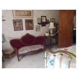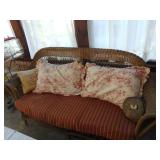 ART DECO ANTIQUE SCALES, TURN OF CENTURY MAHOGANY FRAMED SETTEE |