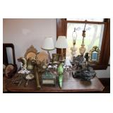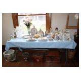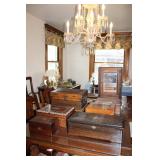 *RADIO CABINET, MANY ACCENT TABLES, WALL ART, STAINED GLASS, TIFFANY STYLE LAMPS, PLANT STANDS, BIRD CAGE, SETTEE, SOFA, ACCENT CHAIRS, ROCKERS, GRAFONOLA, VICTROLA, ACCENT PILLOWS, LIVE PLANTS, CLOCKS, WOOD DINING TABLE W/6 CHAIRS & A GLASS TOP, MUSIC STAND, CHEST OFNDRAWERS,VANITIES, WOOD HEADBOARDS, WOOD DRESSING MIRROR, ANTIQUE BOOKS, VANITY SET AND MORE! |