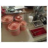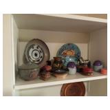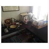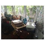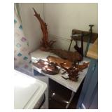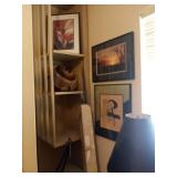 Nagel prints and other framed and unframed art, furniture including mission oak child’s chair, mid-century modern decor, lamps, glass and pottery vases, vinyl records and CDs, dishes and kitchenware, books on art, history, and other topics, flower pots, costume jewelry, clothing, bed and bath items, and more. |