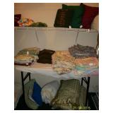 2 - King beds, Kitchen dinette table with 4 chairs,Micro-suede reclining Love seat ,2 - media centers, tea cart, sofa table, What not shelf, electric Recliner, Patio table with 4 chairs ,Patio bar, 5 - low plastic storage cabinets, Miaco massage table ( portable ), Ladies clothing size 12 - 16 Ladies shoes size 10, Bedding , towels Holiday items Art work and more ! |