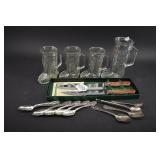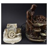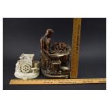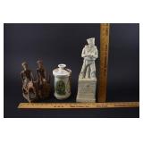 1 Village Blacksmith Cast Bronze Statute On Marble Base (damaged corner) 2 2 Cast Metal Blacksmith Statue 3 Cast Metal Cold Painted Blacksmith Statue 4 3 Small Cast Blacksmith Statues 5 2 Royal Doulton Character Jugs from Williamsburg "Blacksmith" 6 Royal Doulton Toby Character Jug Saurcy Gamp 7 2 Porcelain Statues "Numtsmatist" and Stamp Collector by Gino Hand Painted Arnbart 5th Ave 1930 Made In Japan 8 Small Jewelers Anvil - Jedermann 1st Selbst Seines Gluckes Erwin Kimmich 1941 9 2 Miniature Anvils - USA L 219 10 Large Plaster Statue Entitled "Is It 60 Nominated In The Bond" 11 Large Plaster Statue "Checkers Up At The Farm" 12 Large Plaster Statue Entitled "Courtship In Sleepy Hollow" by John Rogers - Damaged / Repaired 13 Mahogany Secretary w/ Fretwork Doors, Piedmont Top, Serpentine Drawers, Claw & Ball Feet and Chair 34x18x82 14 Globe 4 Drawer Oak File Cabinet 16.5x28x52.5 15 Small Roll Top Oak Desk 42x30x42 16 Painted Wood Frame Glass Display Case 36x14x42 17 MCM Kent Coffey The Goldenaire Dresser w/ Mirror 64x20x32 (without mirror) +30 w/ Mirror 18 Twentieth Century Framed Coins 19 2003 US Mint Silver Proof Set 20 2 American Eagle Silver Dollars 2017 & 1999 21 2 1922 US Peace Silver Dollars 22 3 US 1965 SS Mint Sets 23 Waltham 19 Jewel Pocket Watch In Keystone 14K Gold Case - Total Weight 62 Grams 24 E. Howard 19 Jewel Pocket Watch in Keystone 14k Gold Case - Total Weight 64 Grams 25 Craftsman Machinists Chest w/ Tools 26 Craftsman Drawered Tool Chest w/ Tools 27 Craftsman Ratchets, Breaker Bars, Extensions, Etc. 28 Craftsman Wrenches 29 Assorted S-K Sockets 30 Assorted Tools - Snap-ON, Proto, New Britain, Billings, Etc. 31 Carved Wood Skull Tobacco Pipe 32 Tobacco Pipes, Holder and Jar 33 Tobacco Pipe Holder w/ Pipes 34 Assorted Tobacco Pipes 35 Men's Razors 36 Ball Mason Jars w/ Zinc Lids - 2 #13 37 Graniteware Pails 38 Blue & White Swirl Graniteware Mugs and 2 Pails 39 Blue & White Swirl Graniteware Funnel and Granite Ladle 40 2 Vintage Coleman Lanterns No. 220E and 220A 41 2 Graniteware Percolators 42 3 Vintage Dial Telephones 43 York Solid State Clock Radio w/ Lamp Model DCR-92 44 Welby Sunburst Battery Op Clock 45 Large Matchbook Collection 46 Traveler Made In Holland Vintage Portable Typewriter w/ Carrying Case 47 Lead Glass Hanging Light 48 Assorted Pin Back Buttons 49 Political Pin Back Buttons - Age? 50 PM Craftsman Solid Brass Blacksmith Bookends 51 2 Pair Cast Iron Bookends - Blacksmith 52 2 Cast Blacksmith Statues - 1 As Is 53 Cast Metal Armco Iron Man Statue 54 2 Cast Blacksmith Statues - 1 As Is 55 2 Miniature Anvils - USA L 219 56 2 Miniature Anvils 57 Jewelers Anvil and Other 58 Elite Force US Navy F/A-18C Hornet bbi 1/18 Scale Model by Blue Box Toys - New In Box 59 Jolley Roger North American F-86E Sabre 1:18th Squadron Model by Admiral Toys - New In Box 60 Revell RB-36H Peacemaker and Monogram B-29 Superfortress Models 61 BMC D-Day The Invasion of Normandy Playset 62 Original Hasbro GI Joe Secret of the Mummy's Tomb Playset 63 GI Joe Navy Gunner w/ Twin Mount Anti-Aircraft Gun - New In Box 64 4 GI Joe Action Figures - New In Package 65 4 New In Box GI Joe Dolls 66 4 New In Box GI Joe Dolls 67 Redbox Independence US Aircraft Carrier Playset 68 Renwal Blueprint Models The Visible V8 Engine 69 Daisy Red Ryder BB Gun w/ Box 70 TC Toys Heroes Submarine Playset - New In Box 71 Playing Mantis Sizzlers Speed Racer Race Set 72 Nylint Steel Toys Classic Aerial Hook N Ladder Firetruck New In Box 73 Assorted Craftsman Sockets and Hazet Walter Wrenches 74 Assorted Sockets 1/4 and 3/8 Drives 75 Pipe Wrenches 76 Craftsman, Bonney and Thorens Sockets - Wilpen and Bluepoint Wrenches 77 Steel Tool Box / Cabinet w/ Tools 78 MB Century Tool Box w/ Wrenches, Screwdrivers and More 79 Hollands Bench Top Vise 80 Rigid No.246 Soil Pipe Cutter 81 Crouse Hinds 175 Light 82 Pepsi and Coca Cola Bottle Crates 83 Graniteware Coffee Pot, Funnel, Strainer and Small Teapot 84 Orange Graniteware Saltbox 85 Graniteware Muffin Pan and Pail 86 Vintage Kitchen Utensils 87 Vintage Kitchen Utensils 88 Assorted Knives Including Stag Handle 89 Temp-Tations Old World Bakeware 90 Temp-Tations Old World Bakeware 91 Temp-Tations Old World Bakeware 92 Temp-Tations Old World Bakeware 93 5 Old Books - Pittsburgh / PA Related 94 Books - PA A History 1926 and Pittsburgh of Today 1931 95 Centennial History of Pennsylvania Railroad Company 1846-1946 96 History Second PA Veteran Heavy Artillery 1904 and PA at Gettysburg 1904 97 Framed Print and Photo Andrew Carnegie 98 Duncan Miller Parking Meter Lamp 99 Griswold 202 Cast Iron Dual Burner Stove 100 55 Lb. Anvil 101 Vintage National Cash Register 102 Coors Beer Hanging Light (plastic) 103 Large German Beer Stein 104 Murphy's Irish Stout Neon Beer Sign - Working 105 Sahlen's Smokehoue Deli Meats Light Up Plastic Sign 106 107 Assorted Colored Glass Bottles 108 Assorted Milk Bottles 109 Ring Set w/ Ruby and Diamonds - Possibly 10K Gold (acid test Inconclusive) 110 Illinois Marquis 17 Jewels Pocket Watch 111 Elgin 15 Jewels Pocket Watch10K Gold Filled Keystone Case 112 2 US American Eagle Silver Dollars 2001 & 2013 113 1922 S US Peace Silver Dollar 114 US 1oz. Fine Silver Dollar 115 2 1971 S Eisenhower Proof Dollars 116 Framed Black Americana Pictorial Review Cover and Sheet Music 117 3 Cream of Wheat Mugs and Aunt Jemima Breakfast Club Pinback Button 118 Pornographic Eggplant 119 Snap-On Swivel Sockets 120 Snap-On Wrenches , Swivel Sockets and Extenders 121 Assorted Wrenches 122 Qallen (?) Wrenches 123 Snap-ON, Bonnie, S-K, Proto Assorted Tools 124 Ratchets 125 Wrenches 126 Pepsi and Regent Beverages Wood Crates 127 Spice Tins and More 128 Enamelware Bread Box 129 Enamelware Funnel, Pail and Cream Can 130 Assorted Medicine Bottles Including Opium 131 Elite Force USAF F-16C Fighting Falcon bbi 1/18 Scale Model by Blue Box Toys - New In Box 132 Elite Force F-4J Phantom II VFA-154 bbi 1/18 Scale Model by Blue Box Toys - New In Box w/ Original Cardboard Shipping Box 133 2