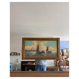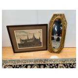 - Lot # 192 - Vintage Gold Toned Mirror & Small Lithograph by Otto Holm