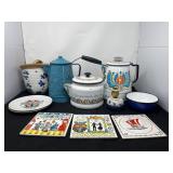 - Lot # 70 - Teapot, Trivets, Plates & More