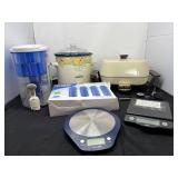 - Lot # 75 - Aqua Crest Water Purifier w/Filters, Food Scales, Rival Crockpot & Sunbeam Electric Frying Pan
