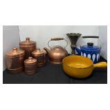 - Lot # 79 - Teapots, Brass Canisters, Ceramic Pan