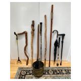 - Lot # 176 - Walking Sticks, Umbrella, Pincher & Umbrella Bucket