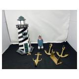 - Lot # 260 - Wood Light House/ Bird House & Brass Anchor Decor