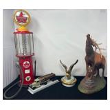 - Lot # 270 - Super Test Plastic Gas Pump, Ceramic Elk, Eagle & Plastic Log Truck