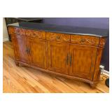 - Black Stone Top Ornate Sideboard with Drawers and Cabinets
