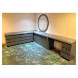 - 1980’s Speckled Gray Granite 6 Drawer Dresser with Mirror, Desk, Computer Console Station