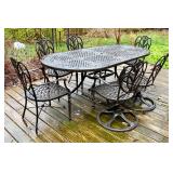 - Aluminum Patio Table and Chair Set With Swivel Rockers - Antique Bronze