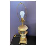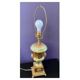 - Vintage French Porcelain 24k Gold Platinum Garden Scene Urn Table Lamps