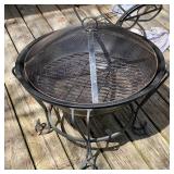 - Outdoor Black Metal Fire Pit Stand with Mesh Cover.