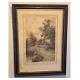 - Antique Framed Elmer Keene Etchings " Close of the Day" and The Village Church"