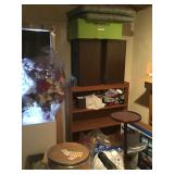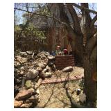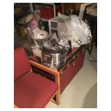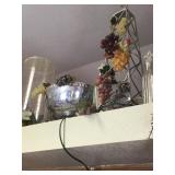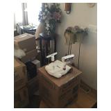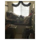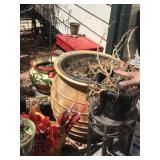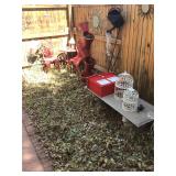 Tools Tool boxes Garage items Antique sled Fridge Deep fryer Corning ware Dining table and chairs Hutch Crystal Wine glasses Porcelain Candles Pillar display case Arm chairs Coffee tables Side tables Waterford lamps Faux flowers Chicken figurines Plate set Glasses Mugs Green suede couch Mirrors Wall art Large pots Artistic pots Red metal patio chairs Yard art Wind chimes Bird houses Fountains Metal flowers Cement benches Chiminea urns Clothing Linens Bookcases Four post bed Artwork Fireplace Pedestal table and chairs Trunk Kitchen appliances Holiday decor Schwinn exercise bike |