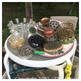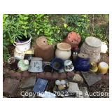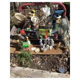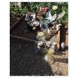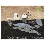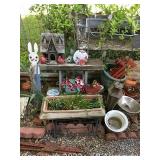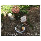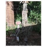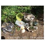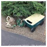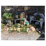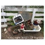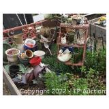 In this auction: Garden Decor, Flower Pots, Furniture, Rusty, Antique Fire Extinguishers, Plant Stands, Bauer Pottery, Trellis, Antique Bed Headboards, Antique Crib, Large Lots, Vintage Outdoor Furniture, Potted Plants, Birdhouses, Garden Tools, Fountains, Concrete Statues, Bicycles, Outhouse, Kayaks, Composter, Mirrors, Antique Baby Carriage.