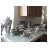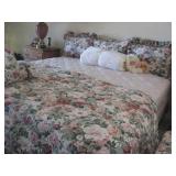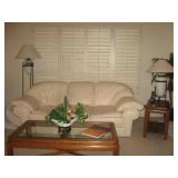 Pastel sofa sectional; recliner; leather chair; dining room table with four chairs; patio lounge chairs; treadmill; coffee tables; home decor; signed/numbered framed art; Lladro pieces; Acoma figurine; area rug; server; entertainment cabinet; bookcase; books; music CD's; lamps; custom-made solid wood desk; king mattress set; Christmas tree; Artificial tree & plants; pet yard cage plus HH (household ) items. |