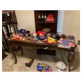 This sale includes: beautiful furniture, including two dining tables and chairs, curio cabinets, buffet, entertainment center, chest of drawers, end tables, upholstered chairs, king headboard, book shelves, lamps,pictures, dishware, antiques, pottery, vintage hats, safes, collection of Lenox birds, collection of NASCAR memorabilia, including autographed items, and much more. |