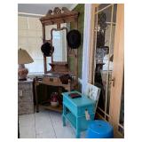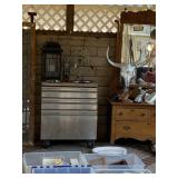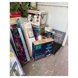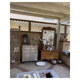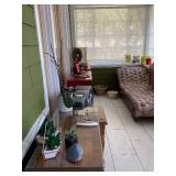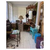 CHINA , GLASS , ,ART , PAINTINGS, , LOTS OF LINENS, LEATHER ARM CHAIRS, ANTIQUE SIDE CHAIRS, ANTIQUE OAK HALL TREE , CARVED ANTIQUE OAK FAINTING SOFA . FULL KITCHEN , BOOKCASES , TONS OF PILLOWS , YARD ART , TOOLS , DOUBLE DOOR SHABBY ARMOIRE , TOOL BOXES , LADDERS , HAND TOOLS , FILE CABINETS , PLANTERS . LOTS OF MISC |