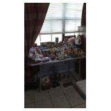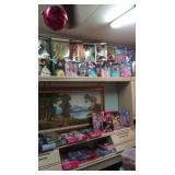We have a large collection of Barbies from the early 80s to the early 2000s most mint in boxes, porcelain doll collection, other small dolls etc. Soapy collection, Snoopy's, small clock collection, hinged boxes, collector cars, figurines, Betty Boop, John Wayne, Albums,Books,DVDs,CDs, jewelry,knick knacks,figurines, vintage Kitchen including Pyrex, Corning ware,glassware, kitchen items, clothes,toys, craft items,fabrics,sewing machines,doll clothes,perfumes,Avon,lots of toiletries etc. there is a big garage full of stuff we are still getting too. It includes More glassware,purses,clothes,crafts, dolls,and more. We have the house full and the garage will be opened to look through and find the hidden treasures.