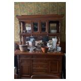 Furniture: Dining room including a fantastic Victorian Server with mirror, Inlaid folding screen,Table, Chairs, Victorian Bed, Victorian side Chairs, Marble top Bureau, Unusual cabinet with 45 small draws, Wicker Chair, Spinet Desk, Living room, Bookcases, Inlaid round occasional table, ...
