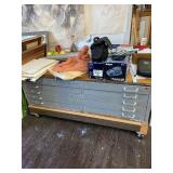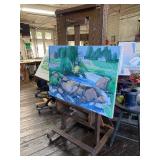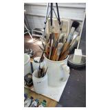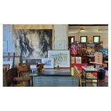 Art Studio: The contents of the art studio are available. As well as old paintings and contemporary paintings, there are lots of artists supplies. Pastels, Paints, Matting equipment and paper, Easels, Large table specifically for matting, Cabinets with narrow draws for laying out art, Tools for framing and art, Canvasses, Frames, Outdoor Sculpture of Man,