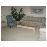 To highlight a few items- A beautiful, deep burgundy leather sofa and matching love seat; two upholsterd recliners; casual coffee tables; artifical plants; double beveled glass dinette set with four chairs; an off-white soft floral couch, love seat and matching chair with stool; queen mattress set; bedroom furniture; pressure washer; Diamond Back Fleet Streak bicycle; casual patio furniture; Hummet Umbrella Boy and Umbrella Girl; Serving for 12 of Noritake "Gourmet Garden" with many serving pieces; Thomasville dining table with six chairs and matching hutch; Treadmill (a few houses away) and much household (HH) items. |