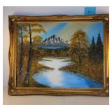 - Peltier Acrylic Sculpture With Scenic Cabin Setting