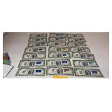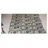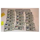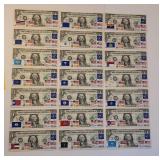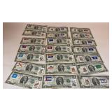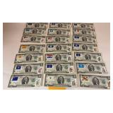 - 28 First Day of Issue Two Dollar Bills with stamps