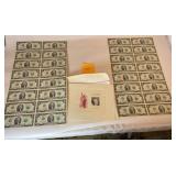 - 2 Sheets Of Uncut Two Dollar Bills And A Statue Of Liberty Print From The Bureau Of Engraving