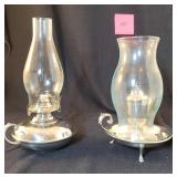 - Oil Lamp And Pewter Hurricane Wall Sconce