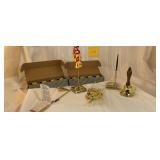 - Brass Bookends, Mail Slot, Candle Snuffer, and Paperweight
