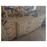 WHITE AND GOLD FRENCH PROVINCIAL STYLE DRESSER AND NIGHTSTANDS