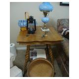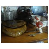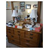 Solid oak lighted curio cabinet w 5 glass shelves Solid oak tall narrow cabinet Antique oak parlor table with barley twist legs, ball and claw feet Antique plant stand Antique Eastlake walnut plant stand Pair 1960's stacking oak tile top tables Antique brass blanket stand Kitchen table with 5 arrow-back chairs Hickory Designs sofa - VERY comfortable Holder's Furniture wingback chair Brass and glass coffee table 2 La-Z-Boy recliners w brown faux suede upholstery Antique child's chair MC solid maple dresser with 6 dovetail drawers and mirror Antique oak drop leaf table 1950's dining table with blonde finish and 6 chairs Broyhill chest w/ 5 drawers Computer desk with shelf Bookshelves Wicker chest Black vinyl chest with storage Lane cedar chest w/ waterfall edge New queen size mattresses Antique full size brass headboard Bush corner desk Custom made cabinet with 2 doors Bunk beds with ladder Wrought iron table Wrought iron glider Pennsbury Pottery Corelle dishes Carnival sugar & creamer Fenton ruffled bowl Hummels Sterling silver spoons Geo F. Cram globe Half gal. Pearson's Pottery jug w/ clay screw stopper Signed Don Dane "Rough Stock" limited ed. print 303/400 Signed Peter Terpatsi "Harpoonist" limited ed. print 203/260 Mirror in gilded frame Logitech speaker system Z-2300 Shark Professional vacuum sweeper New condition Shop vacuum Carpet Shampooer Commentaries Werner 24' aluminum extension ladder Worx snowblower Husqvarna push mower Power saw Band saw Lumber