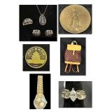 Online Estate Jewelry & Couture Auction DETAILS Join us online June 15, 2022 at 5 PM for a great selection of fine estate jewelry, designer watches and handbags by Louis Vuitton, Chanel, Gucci, Ferragamo, Dior, Burberry, Celine, Balenciaga, Prada and more! We also have a great collection of gold coins; Rolex, Cartier and Pajay watches among others. Hundreds of rings, pendants and earrings in settings from 10-24 k. gold. VIDEO PREVIEWS