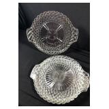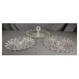 - 1 Fostoria Glass Desert Dish w/Handle, 2 Serving Plates