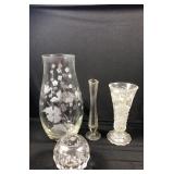 - 1 Fostoria Glassware Chamber Candle Holder & 3 Bowls
