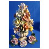 - Nuova Capodimonte Candle Holders, Porcelain Rose, Capodimote Of Porcelain Flower Bouquet