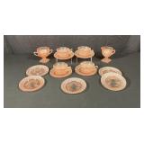 - Miss America Pink Depression Glass. 4 Coffee Cups, 9 Saucers, 1 Creamer & Sugar