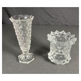 - 1 Fostoria Glassware Vase, 1 Honeycomb Diamond Pattern Spooner