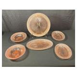 - 6 Miss America Pink Depression Glass Serving Platters & Dishes